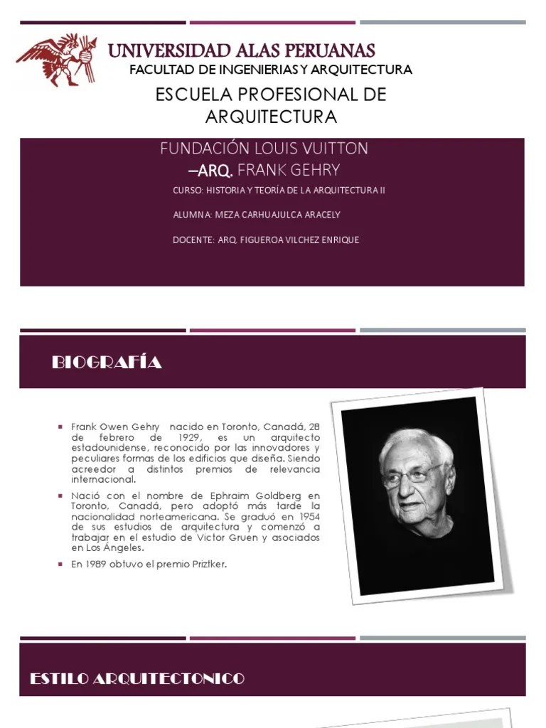 En 1962 fundó su propia empresa, frank o. Si bien se vio influido en sus inicios por le corbusier, su obra mostró. Frank gehry estudió arquitectura en la universidad de california del sur y urbanismo en la de harvard. Frank owen goldberg, más conocido como frank gehry, nació el 28 de febrero de 1929 en toronto, canadá. En 1962 fundó su propia empresa, frank o. Frank owen gehry nasceu em toronto, canadá, no dia 28 de fevereiro de 1929. El autor ha forjado, a lo largo de seis décadas, una brillante carrera caracterizada por el innovador uso de los materiales y la concepción del edificio como una obra de arte en. La familia goldberg era polaca y. Este estilo representa la fragmentación y el diseño no lineal basado en la atenuación de la rigidez.